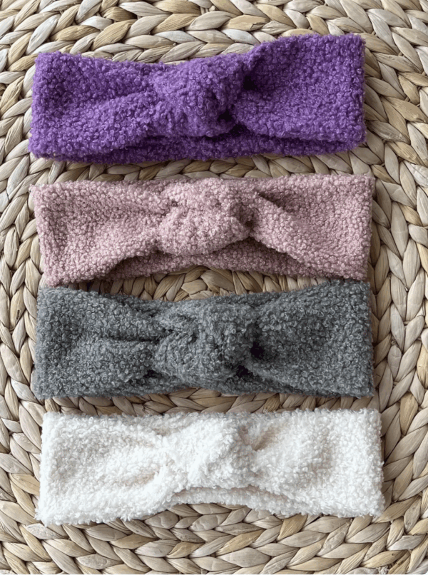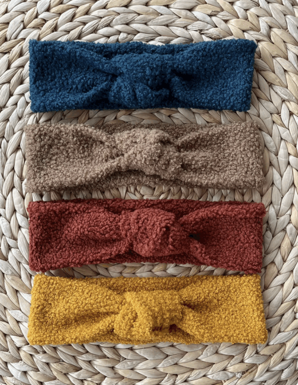 Made from plush teddy boucle fabric for the perfect cozy feel. Designed to keep your ears warm on chilly days, this versatile accessory adds a cute, textured touch to any fall or winter outfit. The knotted design adds a chic and modern twist.