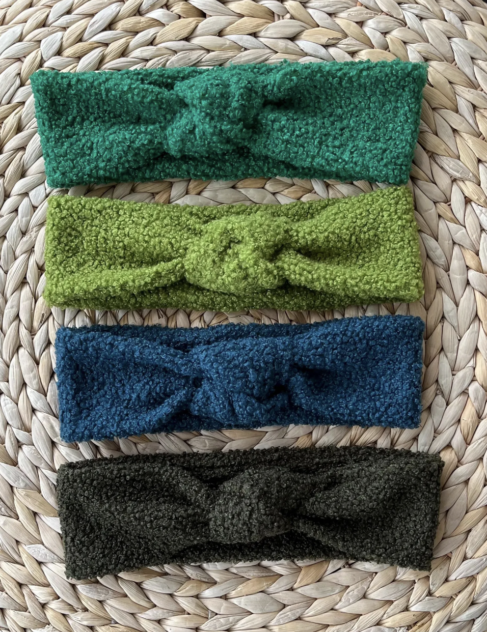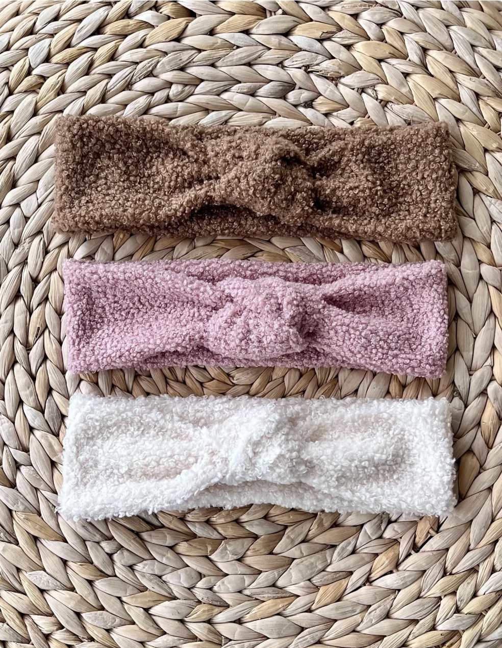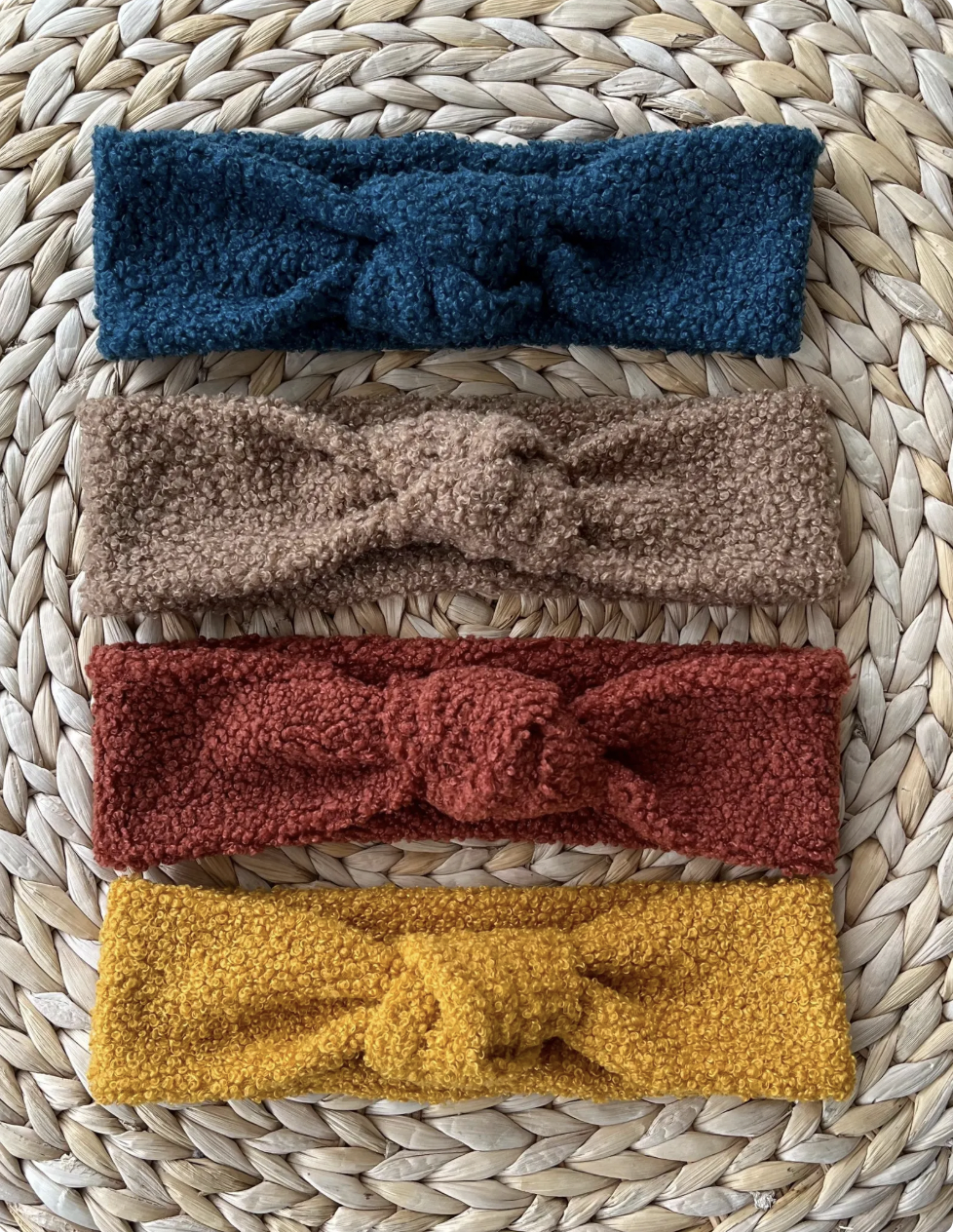 Made from plush teddy boucle fabric for the perfect cozy feel. Designed to keep your ears warm on chilly days, this versatile accessory adds a cute, textured touch to any fall or winter outfit. The knotted design adds a chic and modern twist.